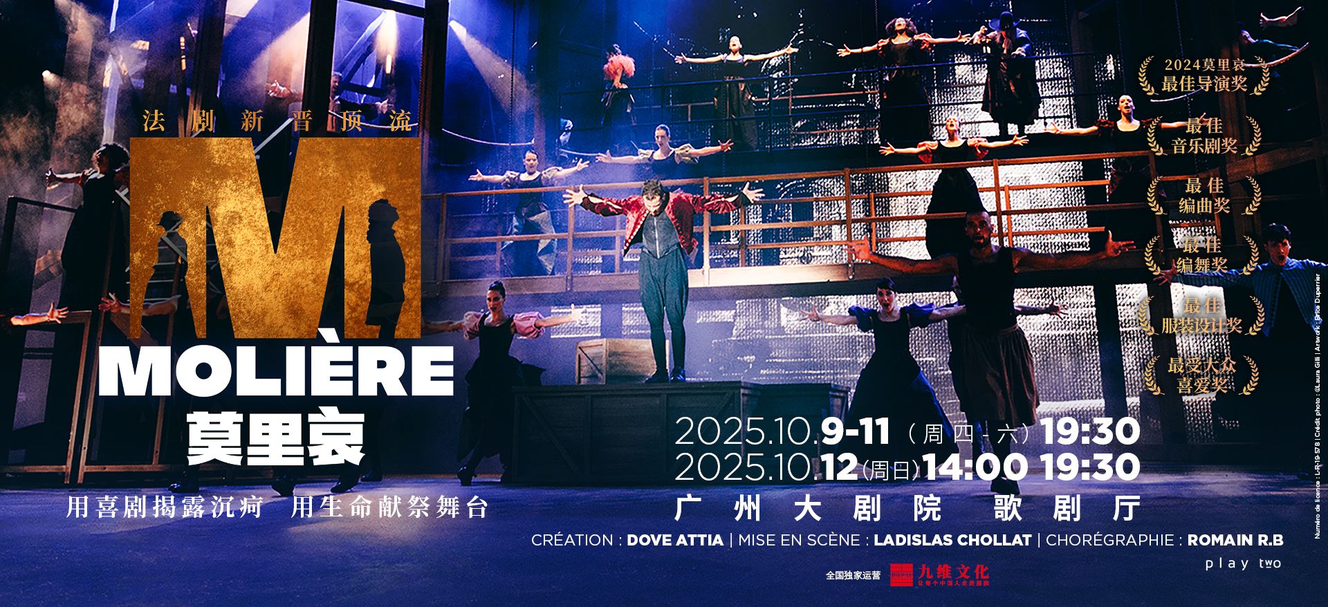 法语原版音乐剧《莫里哀》极具创造性地融合说唱、都市音乐以及现代街舞,讲述了法国剧作家莫里哀的一生,通过精彩的舞台表演,以一种全新的形式栩栩如生地展现在观众面前。音乐剧《莫里哀》由《摇滚莫扎特》《太阳王》等著名法语音乐剧的创作者德夫·阿提亚(Dove Attia)担任编剧及词曲创作,亦汇集法国一流主创团队,不仅具有丰富的娱乐性,更是用现代的方式对法国文化遗产的致敬。该剧首演以来迅速展开法国全国巡演,160余场演出一票难求,吸引观众超过50万人次,曾获2024年法国音乐喜剧奖包括最佳音乐剧奖在内的七项大奖,以及同年法国莫里哀戏剧奖最佳音乐剧提名,成为法国音乐剧界当之无愧的又一全新爆款佳作。2025年9月,《莫里哀》将首次登上中国的舞台,有望掀起新一轮中法文化交流的浪潮。