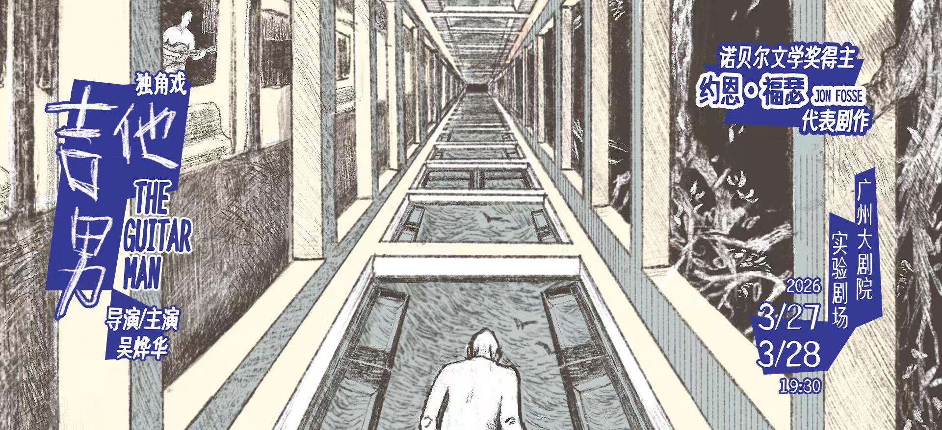 《吉他男》是诺贝尔文学奖得主约恩·福瑟最具代表性的剧作,主人公和他的妻子身上也凝聚了某些福瑟早年生活的缩影——他曾渴望成为音乐家或者画家,但最终放弃。作品摒弃了传统的情节叙事和激烈的戏剧冲突,通过时而萎靡、时而高亢的独白,道出一个中年男人挣扎于尘世的种种心酸与无奈:明明是人来人往,却又乏人问津;明明是拨着琴弦,却又唱不出心曲;明明那么努力地生活,却又好像被生活遗弃……