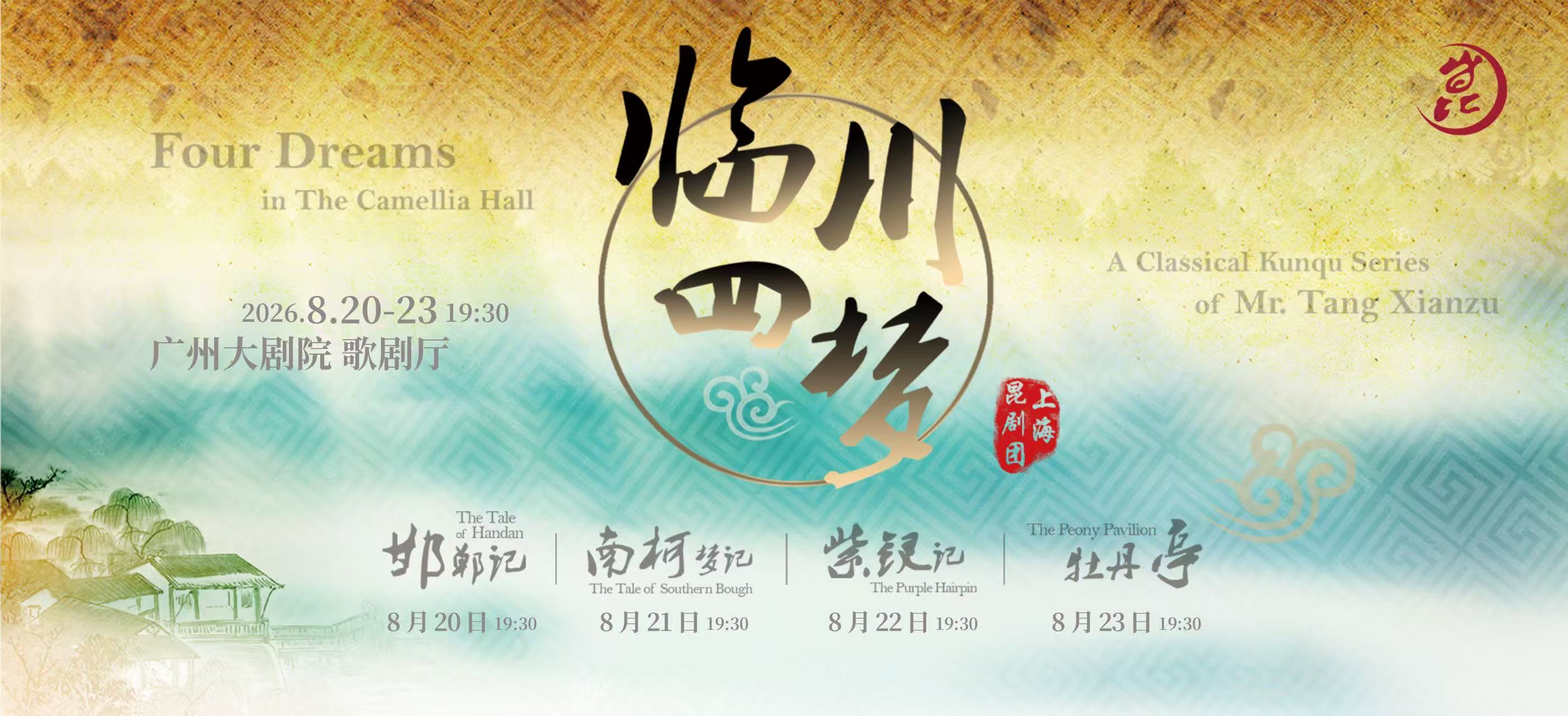 上海昆剧团是至今为止全国各艺术院团中唯一一家完整推出《临川四梦》的剧团。2016年恰逢东方戏剧大师汤显祖逝世400周年,上海昆剧团推出《临川四梦》。游园惊梦、黄粱美梦、一梦华胥、南柯一梦……四个晚上,四本大戏,如梦似幻,绚烂夺目。《临川四梦》世界巡演超过60场,足迹遍布北上广深等十个国内城市以及海外欧美亚多个城市,成为举世瞩目的文化盛事。值得纪念的是,彼时这场轰动海内外的文化之旅,巡演首站便选在了广州大剧院。