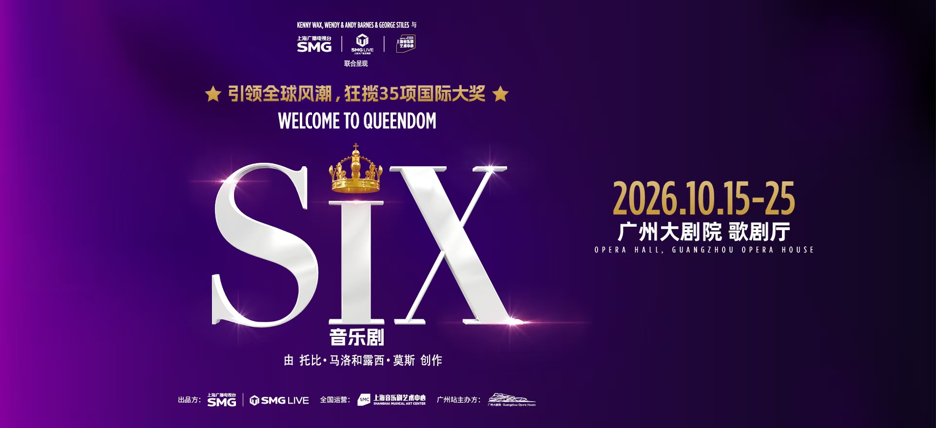2025年,《SIX》首登中国,即在上海全城刮起“紫色风暴”,缔造演出市场现象级话题。2026年10月起,原版音乐剧《SIX》将首次开启中国巡演,10月15-25日“紫色风暴”即将登陆广州大剧院。