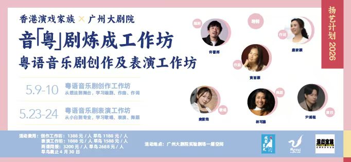 由香港演戏家族x广州大剧院主办的「粤语音乐剧创作及表演工作坊」即将登陆广州大剧院。