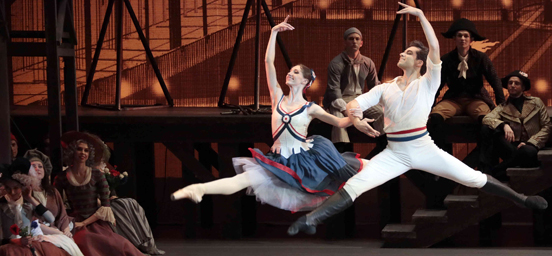 《巴黎的火焰》由鲍里斯•阿萨菲耶夫作曲,是俄罗斯现代芭蕾舞剧的早期代表作。莫斯科大剧院本版《巴黎的火焰》是由编舞大师阿列克谢•罗曼斯基(Alexei Ratmansky)在瓦西里•瓦伊诺宁(Vasily Vainonen)的前作上进行大幅改编而来。舞作中对于斗志昂扬的革命青年的描绘,打破了古典芭蕾轻盈温婉的传统印象,《马赛曲》《啊,都会好的》等革命歌曲的加入更让全剧热情激荡。